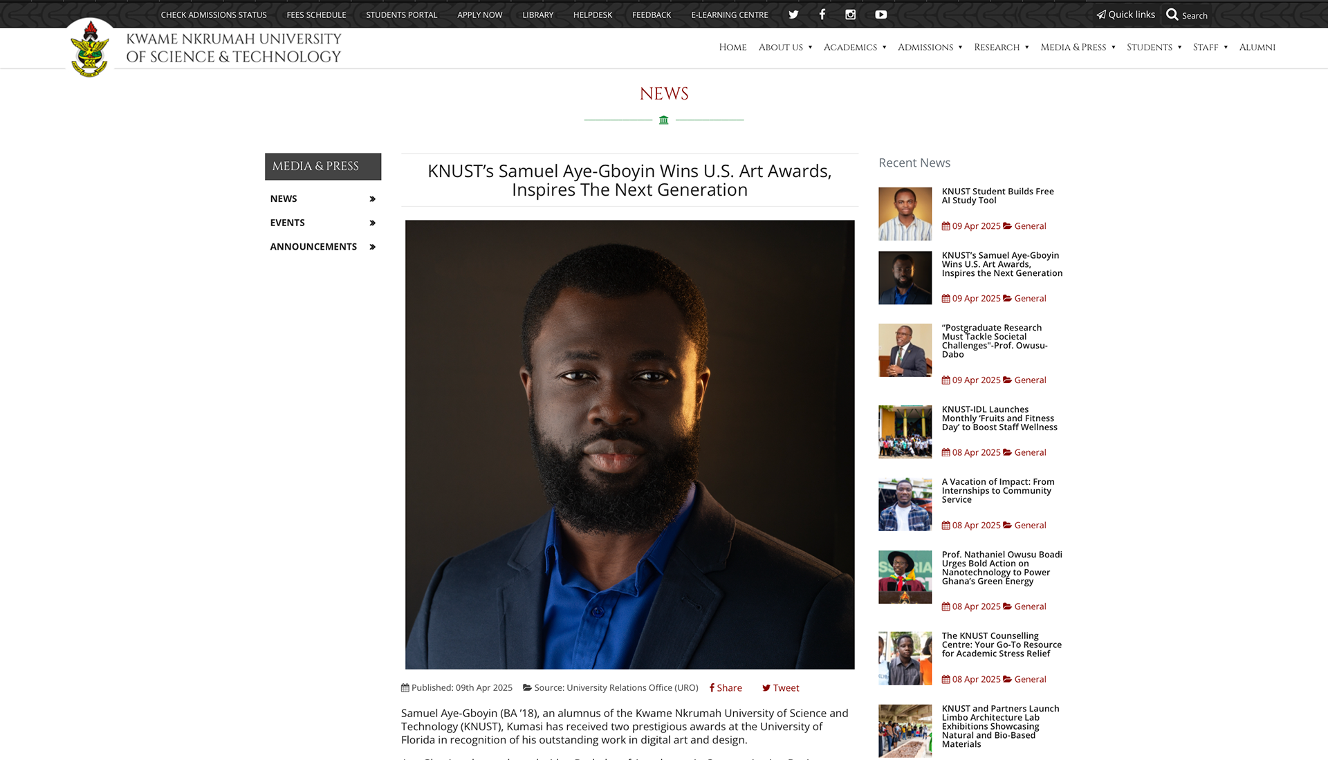 KNUST’s Samuel Aye-Gboyin Wins U.S. Art Awards, Inspires The Next Generation.